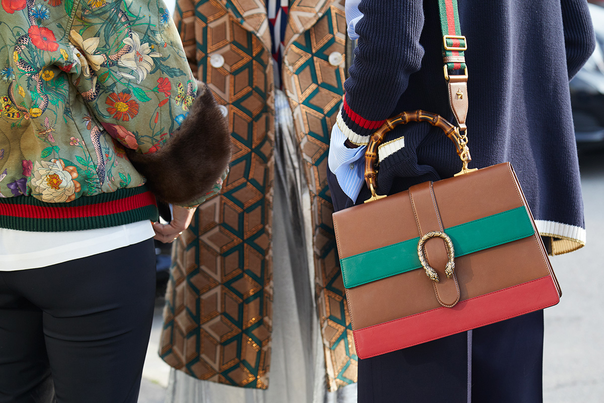 Milan,-,February,21:,Women,With,Gucci,Leather,Bag,In